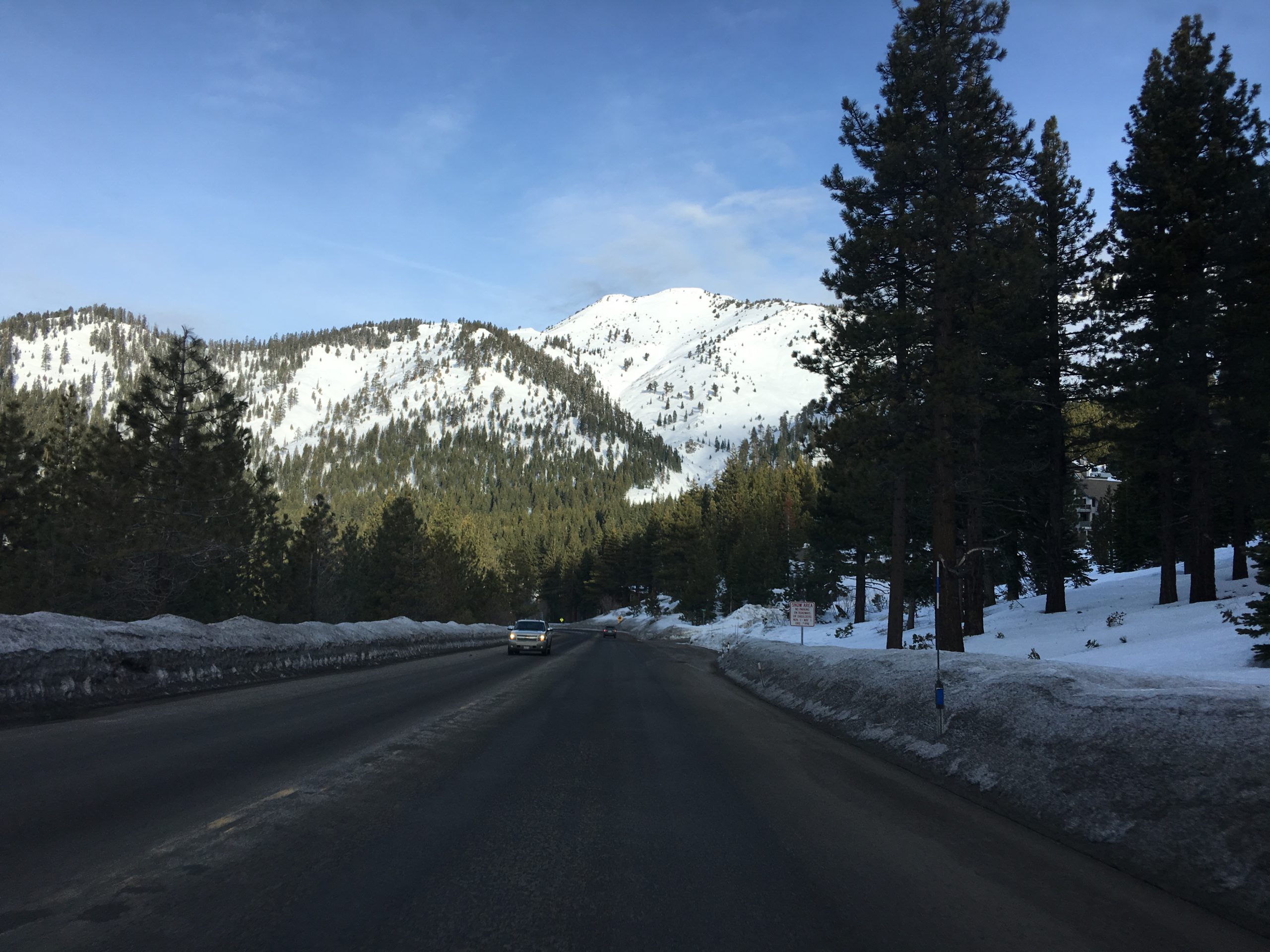 今冬は積雪が例年より多く、リノ・タホ―周辺のスキー場はどこもここ数年来久々の抜群のゲレンデ・コンディション。お天気と気温がマイルドな日を選び Diamond Peak Ski Resort へ。リノからMt.Rose Hwyのシーニック・ドライブを経てタホ湖もチラ見しながらスキー場へ。結構な降雪があった日から5日を経ていて道路はチェーン規制もなくクリアで安心ドライブ。リノ市内から小一時間もかからないでした。