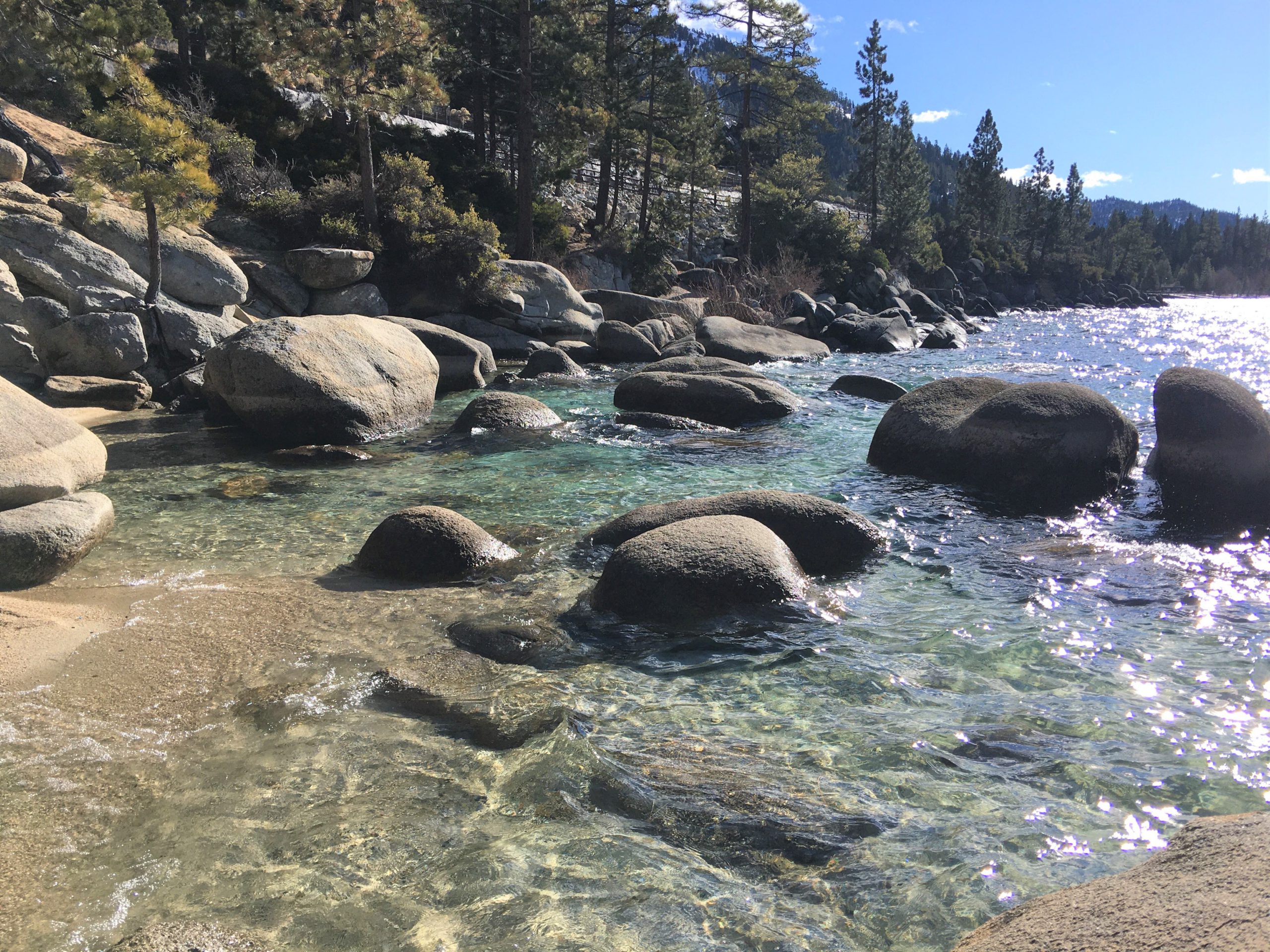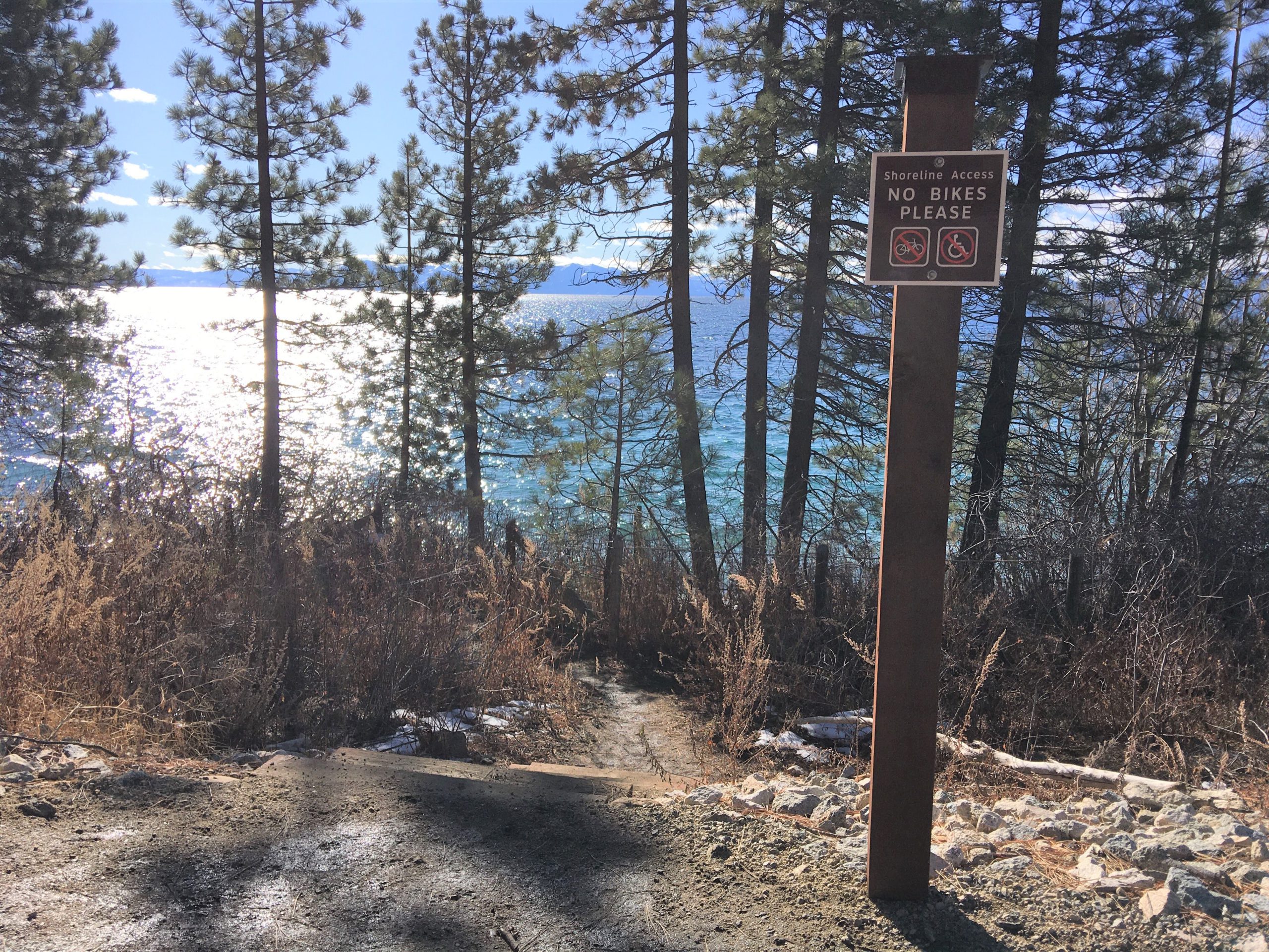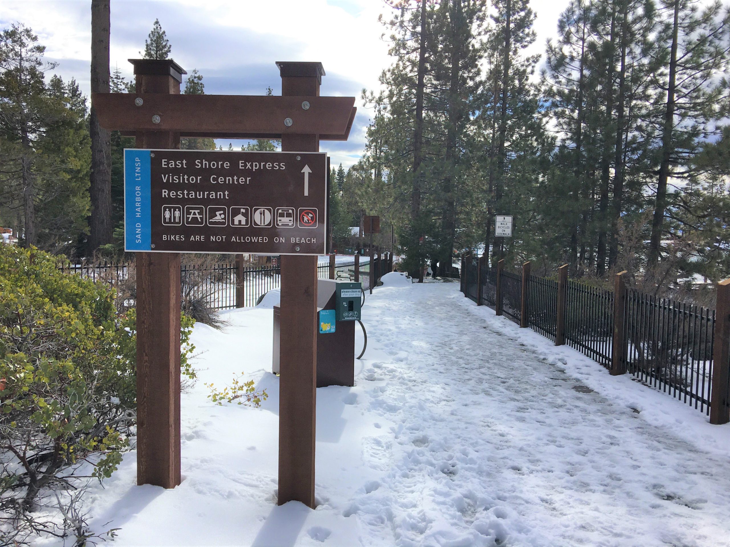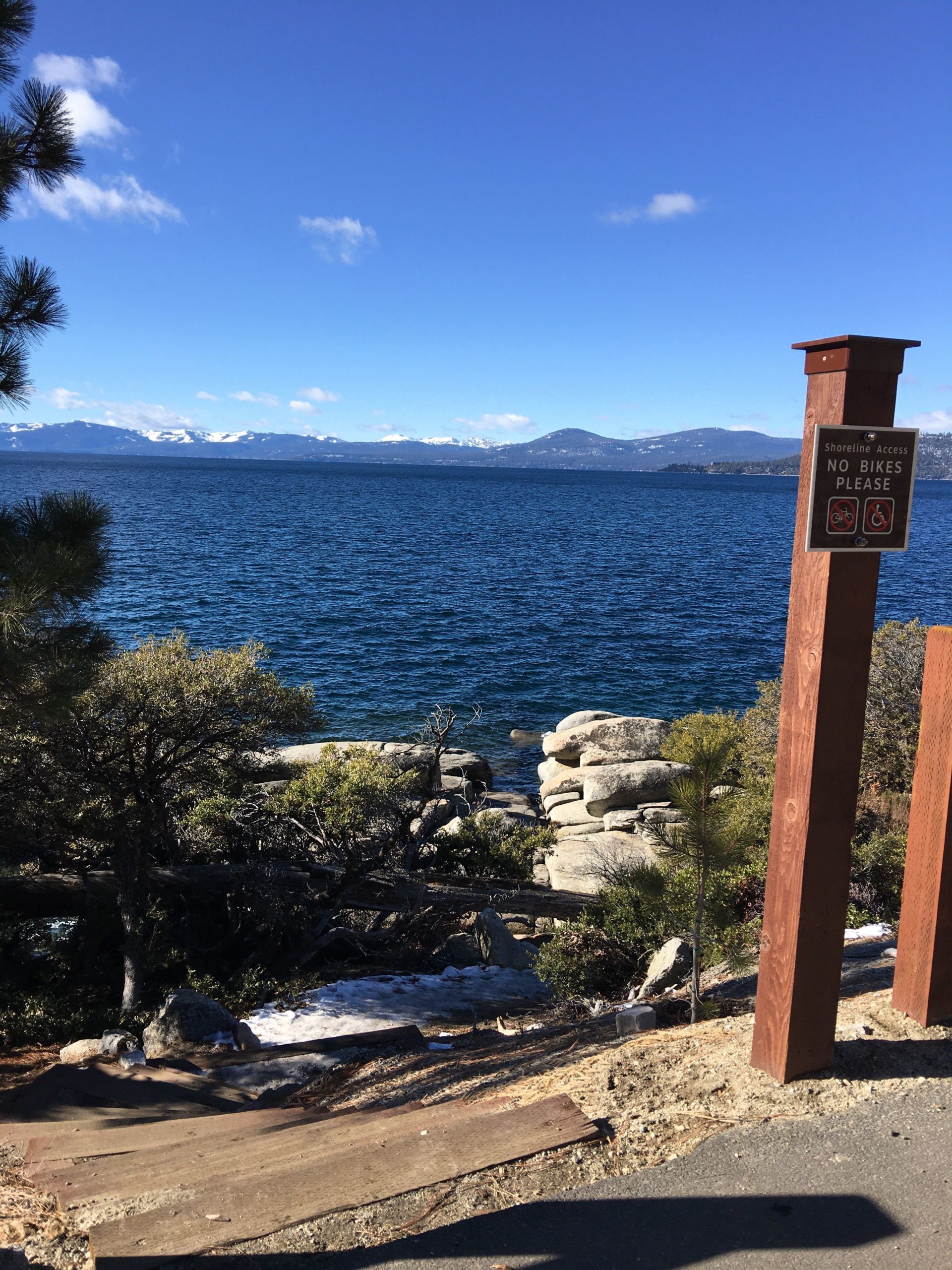 昨夏(2019年6月)に満を持して開通した Tahoe East Shore Trail は、タホ湖の住民やファンにとって積年の夢であった湖岸沿いの安全で風光明媚な遊歩道兼バイク・トレイル。総工費は約12ミリオン・ドル(約13億円)。2019年11月にはジャスティン・ビーバー(25才)がプライベートでこの遊歩道を訪れた際に「お祈りと瞑想をしに来たんだ。」とインスタグラムに投稿したことで、この遊歩道、一躍全国区になってもいます。オープンから夏季、そしてビーバー効果があった際の混雑を避けてるうちに時間が経っちゃいましたが、落ち着いたであろう2020年1月にようやく訪れて来ました!