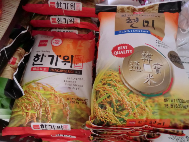 日本米は主にカリフォルニア産。韓国ブランドのカリフォルニア米は$12.99(2015年12月時)と安く日本米に近いお米。玄米(ブラウンライス)やタイ米などのロンググレインライスもあります。お酒は日本・韓国・中国・米国産のビール、や日本酒があります。